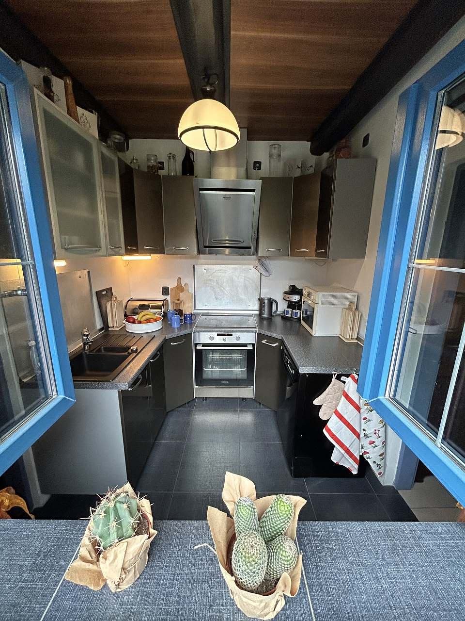 Kitchen: kitchen unit, dishwasher, stove 4 cooking plates + oven (hot air, grill), fridge / freezer 190 lt, MW oven, electric kettle, coffee maker