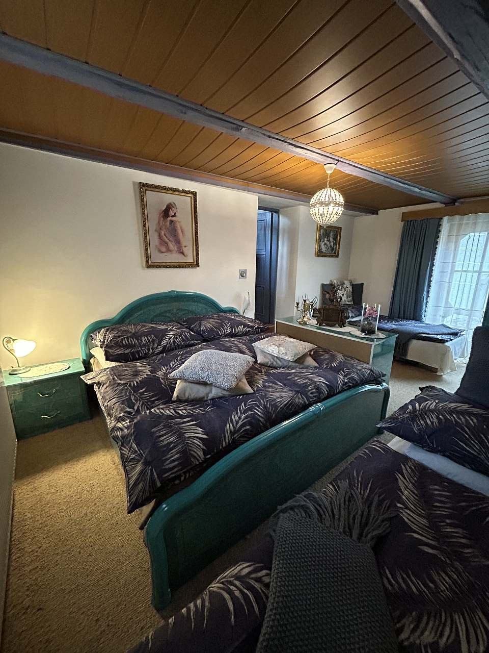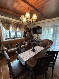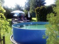 Completely reconstructed recreational house is situated in the village Buk surrounded by deeps woods and ponds 3 km from Jindřichův Hradec. It is suitable for families looking for privacy and peace, who can make use of all social availability of the historical town. There is a garden 600 m2 with sitting and deck-chairs, barbecue, table tennis, baby swimming pool and swimming pool with the diameter of 3,5 m. The garden also offers the possibility of cooking in an equipped garden kitchen. Ground floor 85 m2.